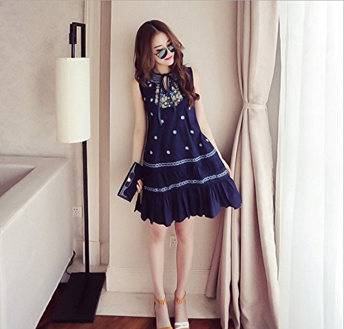 ツバメ--屋 春夏 マタニティ ワンピース タイトフォルム マキシ丈 ワンピース デニム スカート外出着 妊婦服 ワンピース 授乳服 / マタニティ (XL, ブル-)