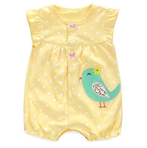 ツバメ--屋 ベビー服 赤ちゃん 子供服 可愛い綿ロンパース お出かけ 出産祝い (6M, イエロー)