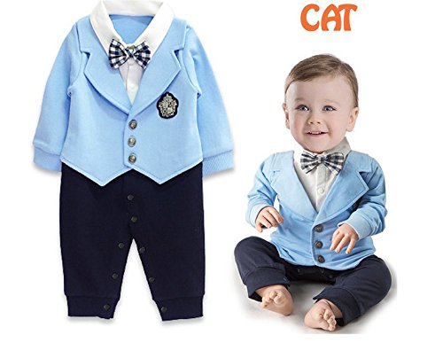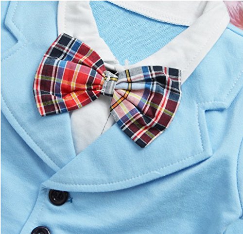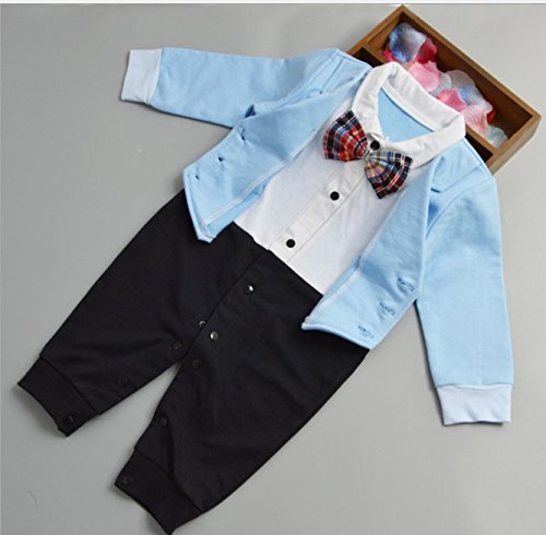 ツバメ--屋 ベビー服 スーツ風 ロンパース 赤ちゃん カバーオール 新生児 長袖 春秋着 子供服 蝶ネクタイ キッズ フォーマル 男の子 出産祝い 写真撮影 (80, ブル-)