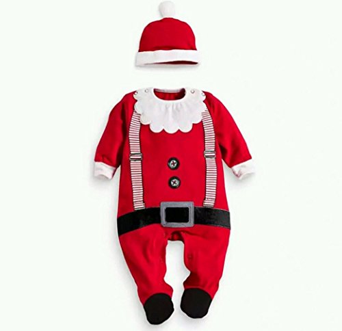 ツバメ--屋 ベビー服 スーツ風 ロンパース 赤ちゃん カバーオール 男の子 女の子 長袖 クリスマス プリント(サイズ80cm )