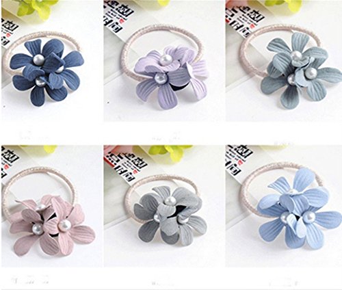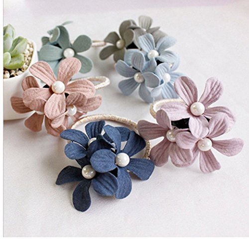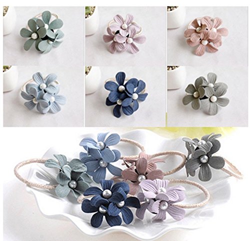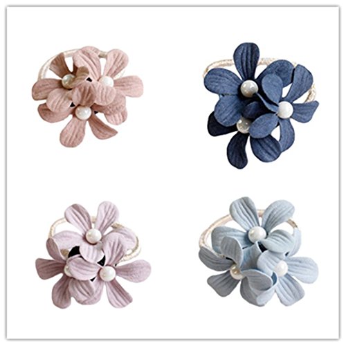 ヘアゴム 子供 ヘアゴム かわいい花 真珠 ボンボン 髪ゴム 大人 おしゃれ ヘアアクセサリー シュシュ リングゴム シンプル (4枚セット)