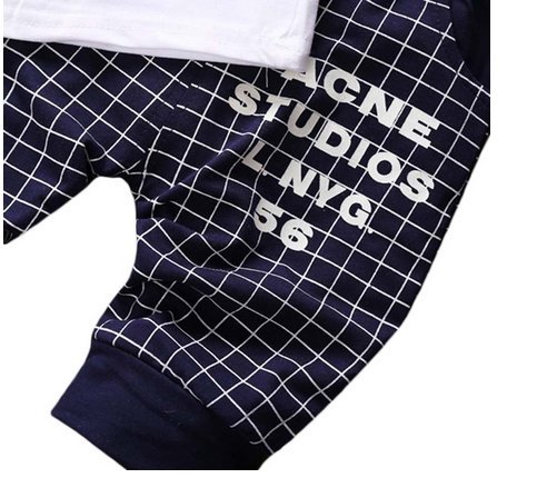 ツバメ--屋 ベビー服 赤ちゃん 男の子 キッズ Tシャツ ズボン セットアップ 子供 チェック柄 可愛い 春夏 カジュアル お出かけ 出産祝い ( (M(90CM), ネイビー)