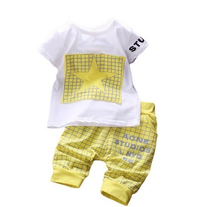 ツバメ--屋 ベビー服 赤ちゃん 男の子 キッズ Tシャツ ズボン セットアップ 子供 チェック柄 可愛い 春夏 カジュアル お出かけ 出産祝い ( (M(90CM), イエロー)