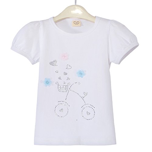 子供服 女の子 半袖 Tシャツ 女児 トップス 無地 ブラウス 可愛い ガールズ 通園 ルームウエア カジュアル (ホワイト, 110)