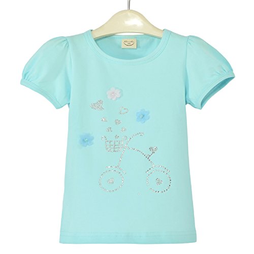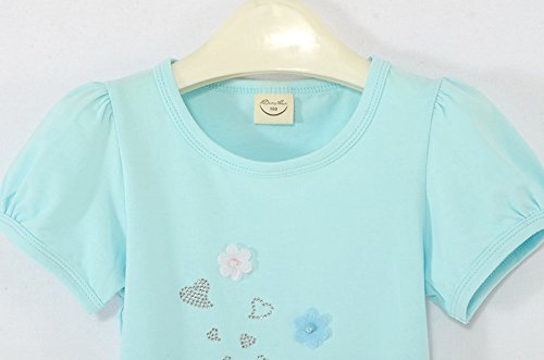 子供服 女の子 半袖 Tシャツ 女児 トップス 無地 ブラウス 可愛い ガールズ 通園 ルームウエア カジュアル (ライトブルー, 130)