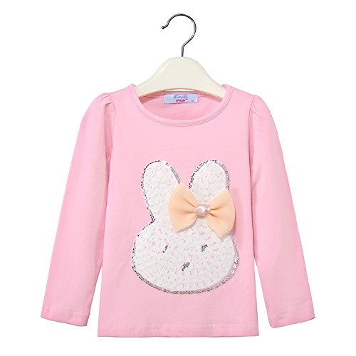 子供服 女の子 長袖 Tシャツ 女児 トップス 無地 ブラウス 可愛い ガールズ 通園 ルームウエア カジュアル (ピンク, 110)