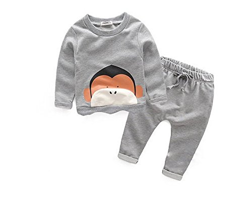 ツバメ--屋 キッズ ニットセーター ベビー服 男の子 Tシャツ ズボン セット 丸首 長袖 サメプリント 子供服 こども 男児プルオーバー 秋冬トップス ボーイズ カジュアル (120, グレー)