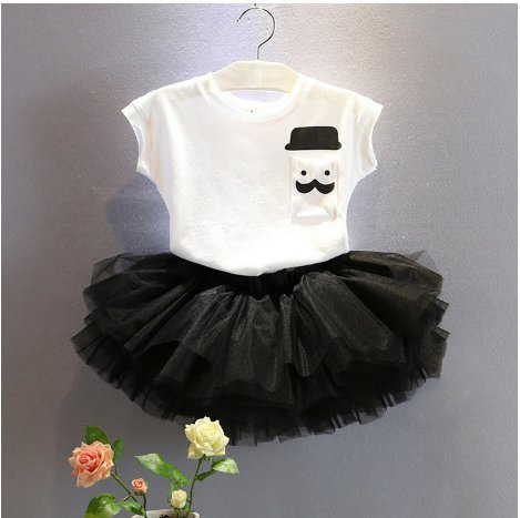 ツバメ--屋 子供服 女の子 スカート ふわふわ チュールスカート トップス 上下 2点セット セットアップ 半袖 tシャツ ネコ プリント ガールズ フレアスカート 100 110 120 130 (130)