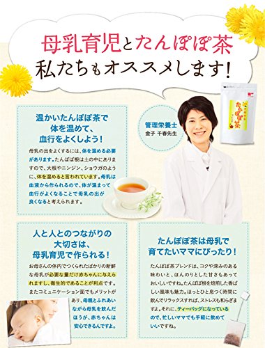 たんぽぽ茶ブレンドは、母乳育児を応援するたんぽぽ根をベースに、カルシウム・鉄でお馴染みのぎん茶の原料醗酵ギンネムと、妊娠中・産後の体型維持にうれしい黒豆をブレンド。