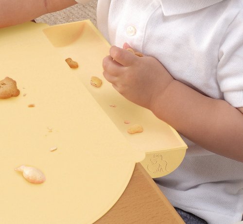 食べこぼしをキャッチする受け皿付食卓マット、食品衛生法に基づく検査に合格しているので、食品をじかに置いて食器として使えます。