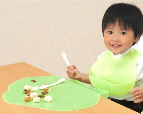 食べこぼしをキャッチする受け皿付食卓マットです。平らな表面なので置いたものをしっかりキープ、受け皿が食べこぼしをキャッチします。