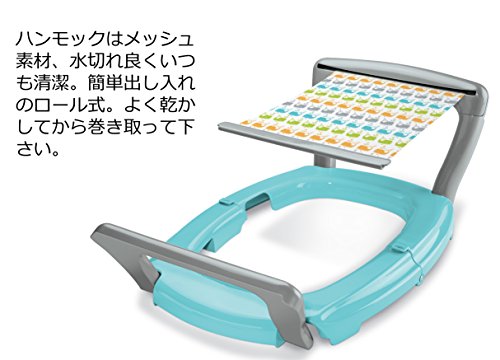 「Babys Journey バス・ハンモックチェアー」は、お風呂の洗い場や台所のシンクで使用する沐浴用ハンモックチェアーです。台座は広幅の4角形で確実にロックされる機能付。両側の支柱はコの字型。全開してロックされるのでグラグラせず、しっかり安定してハンモックを支えます。ハンモックはロール収納式。使用しない時、傷つけずに清潔に保てます。ハンモックは伸縮性があるメッシュ素材なので、赤ちゃんの体重でたわみ、しっかりホールドします。さらっとしたメッシュ素材は赤ちゃんの肌にやさしく、乾きも早いのでいつも清潔に使えます。使用後はハンモックを収納して小さく折りたためるので場所をとらず邪魔になりません。台座の裏4か所に滑り止め付き。 品質表示 本体:ポリプロピレン、ネット:ポリエステル、滑り止め:熱可塑性エラストマー 原産国 中華人民共和国