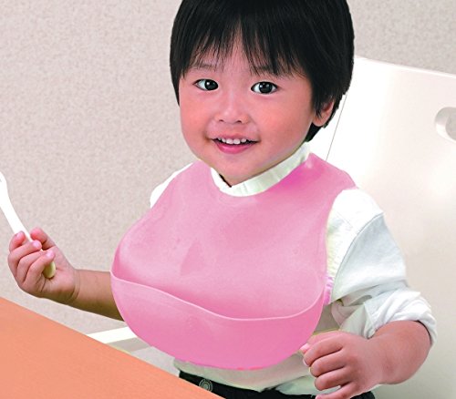 お手入れ簡単 柔らか 安心素材 首元にフィット 食べこぼし ポケット付き エプロン スマートビブ ピンク