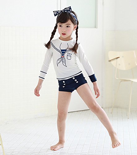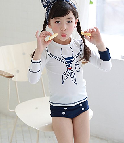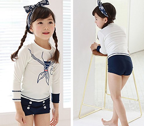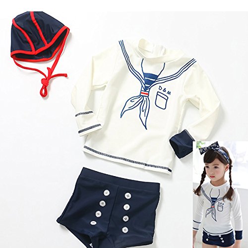 子供 水着 キッズ スイムウェア ガールズ 水着 女の子 長袖水着 帽子付き セパレート 3点セット (110, 写真参照)