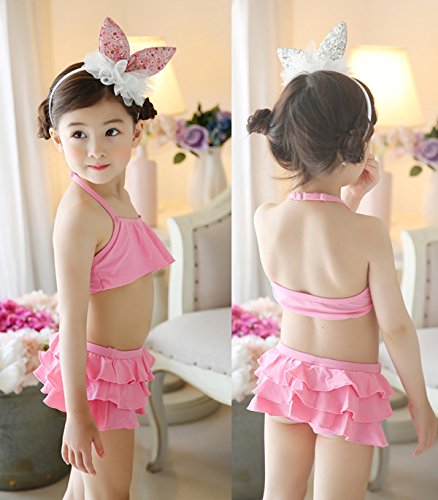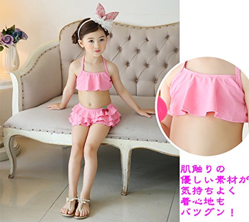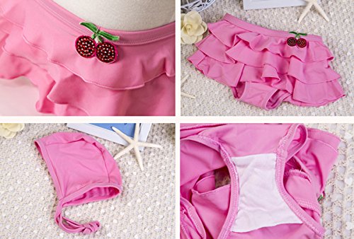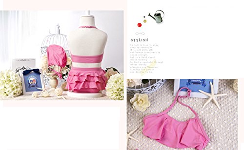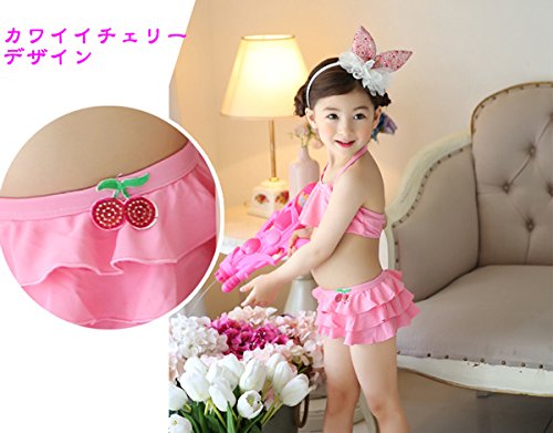 子供 水着 キッズ スイムウェア ガールズ 水着 女の子 女児用 帽子付き セパレート かわいい ピンク 3点セット 通販 水着 (100, ピンク)