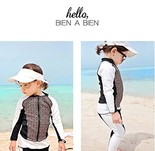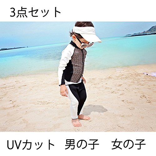 子供水着 キッズ 水着 女の子 男の子 水着 3点セット セパレート 長袖 パンツ UVカット 紫外線対策 日焼け防止 温泉 スイムウェア ガールズ ボーイズ 夏 幼稚園用 子供お誕生日プレゼント ホワイト (M, ホワイト)