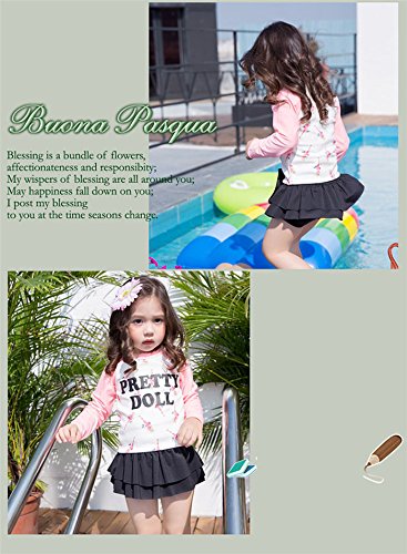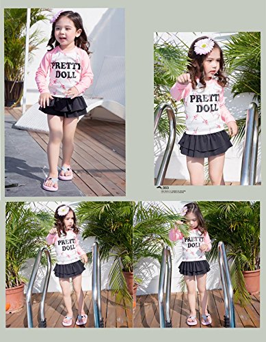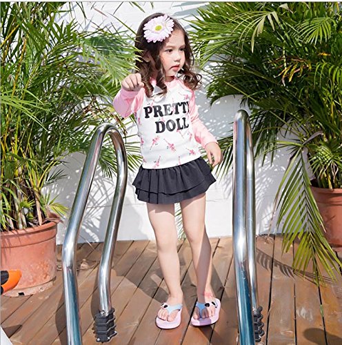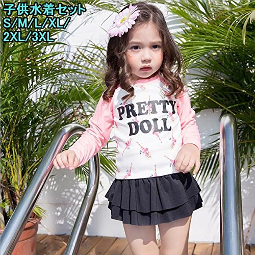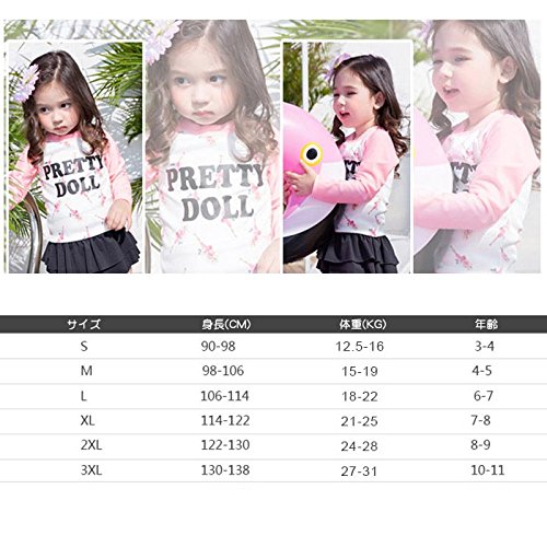 子供 女の子水着 女児 水着 上下2点セット 長袖 日焼け止め 子供水着キッズ スカート フリル スイミングウェア 全1色(S/M/L/XL/2XL/3XL) (XL, 写真参照)