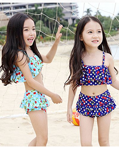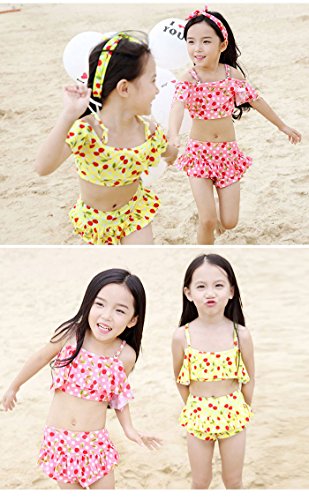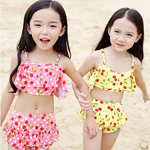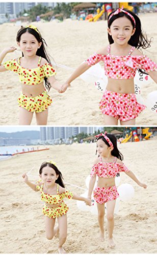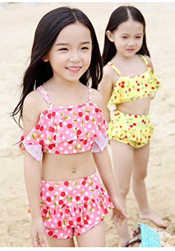 子供 女の子 水着上下 2点セット 水着セット ビキニ 大人っぽい チェリー柄 ドット柄 可愛い キッズ 水着 超人気 スイミング スクール スイムウェア 4色 XS/S/M/L (L, イエロー)