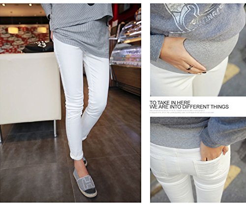 丈は少し短めなので、ブーツインで合わせたり、靴下をチラ見せして履くとお洒落度アップ↑↑↑ 長めのトップスやワンピと合わせてのコーディネートにも良くマッチしますよ^^ お腹周りはお腹の大きさによって細かいサイズ調節が可能なアジャスター機能付きなので 妊娠初期から臨月、産後まで長い期間着用頂けます!! ストレートタイプなので膝下の締め付け感も無く、足のラインをキレイに見せてくれます★ 2015春バージョンからウエスト調節用のゴムとボタンが生地の外側についています。 肌が敏感になるプレママの肌にゴムやボタンが当たらないのがポイント♪