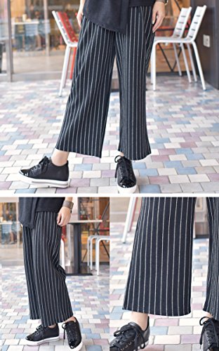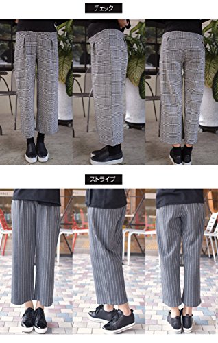 【bttm102876】ブラック(ストライプ)【マタニティ パンツ】チェック/ストライプから選べる 9分丈 タック入 マタニティ ワイドパンツ ガウチョ ガウチョパンツ マタニティウェア マタニティ パンツ