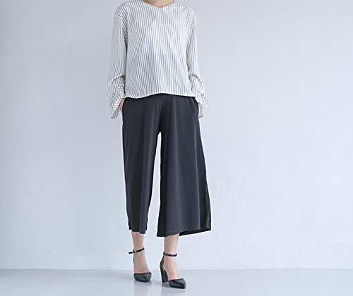 スラリとしたシルエットの楽々ワイドパンツのご紹介です♪ 丈は9分丈で足首が見えるくらいです。 脚をほっそり見せてくれる丈なのでスタイルアップにも! どんなトップスにも合わせやすくて、コーディネートに困ることもありませんね☆ 裾に向かって広がっていくタイプなのでロングスカートっぽいシルエットになります♪ サイズ:フリー カラー:グリーン、ベージュ、ブラック、チャコール