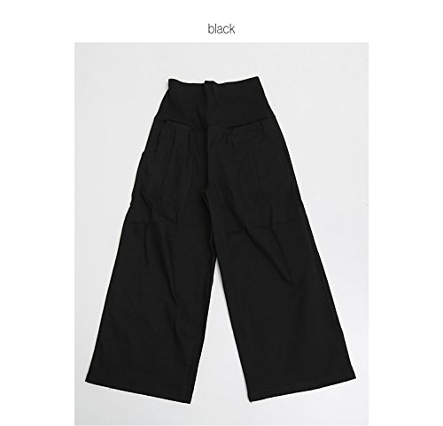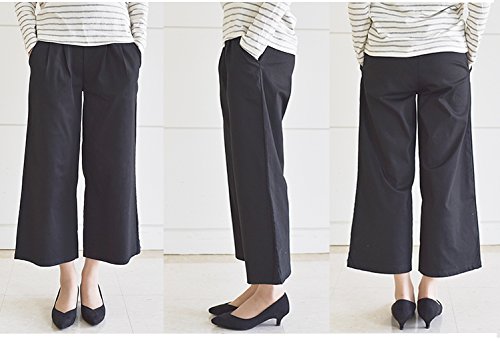 【bttm102852】マタニティ パンツ タック入 8分丈 ストレッチ ラクチン マタニティー ワイドパンツ (フリー, ブラック)