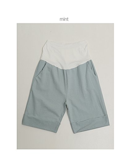 【bttm102936】3色展開 裾折り返し ポケット付 マタニティ ハーフパンツ パンツ (フリー, ミント)