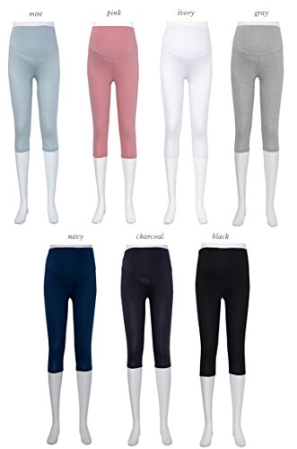 マタニティ レギンス 夏 夏用 ストレッチ 七分 涼感 リブ スパッツ タイツ トレンカ レギンスパンツ 妊婦用 7色展開(L18030008)) (7分丈, ブラック)