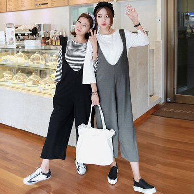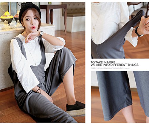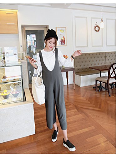【30000102810】 (チャコール)[マタニティ パンツ]【産前産後兼用】Vネック 8分丈 マタニティ サロペットパンツ【30000102810】 (チャコール)