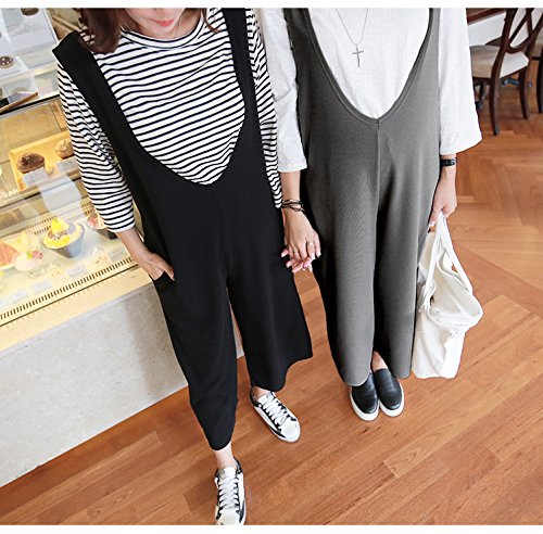 人気のサロペットパンツの登場です。 着心地良く、伸縮性の良い素材で可愛いカジュアルコーデを実現! どんな色のトップスとも合わせやすいから毎日のコーデが楽になりますね♪ 丈が8分丈で少し短めだから、足元のおしゃれも一緒に楽しみましょう!! 大きく開いたVネックが特徴♪ インナーも程よく見え、顔周りもすっきりとした印象に☆ ネックラインとアームホールは生地が切りっぱなし加工になっています。 お腹周りは通常で110cm、最大142cmあるので臨月まで問題なし! もちろん、産後もゆったりと着て頂けます。 モデル着用カラーはブラックです。 ※丈は8分丈ですが、背が低めの方には足首が出るか出ないかくらいの丈になる可能性がありますのでご了承ください。 カラー:ブラック、チャコール、ネイビー、カーキ サイズ:フリー