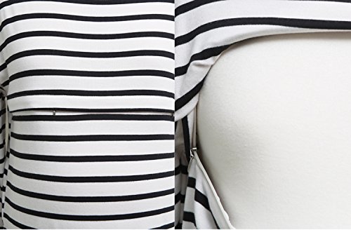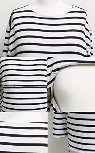ゆるめのボートネック、ゆったりとしたシルエット、定番のボーダー柄。 スカートやショートパンツ、デニム、スキニーなどどんなボトムスとも相性◎なので毎日のコーデに重宝します。 ゆったりめだからこそ産前産後の気になる体型をしっかりカバー! ママに嬉しいポイントがギュッと詰まったそんな授乳カットソーになっています。 生地は薄すぎず丁度いい厚さだから透け感等気になりません。 また伸縮性も良いからマタニティ期間も安心して着られ、産後の体型カバーもばっちり! 授乳口は胸の部分に真横にジッパーがあるタイプ。 大きく開くことからお家での授乳等にぴったりで授乳しやすいと好評です♪ カラーも定番のアイボリーから秋らしいベージュやチャコールをご用意。