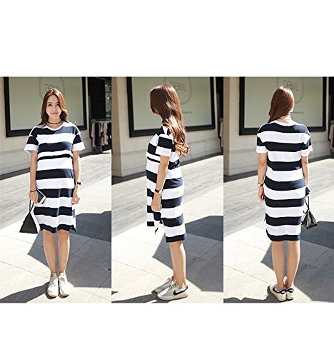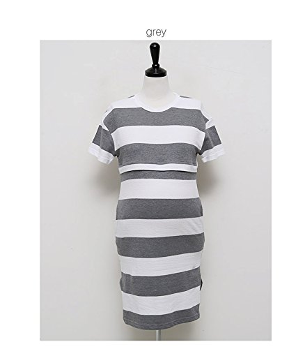【cd108819】綿100% 前ジッパー サイドスリット ポケット付 ボーダー柄 マタニティ ワンピース (フリー, グレー)