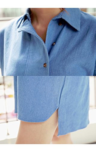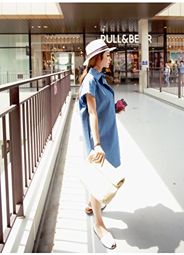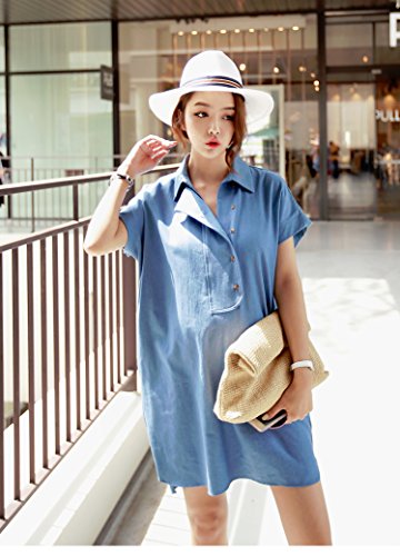 【cd108823】授乳服 ワンピース 綿100% 膝上 半袖 デニムワンピ (フリー, ライトブルー)