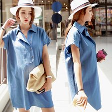 短めの着丈やすっきりとしたシャツ襟の胸元で、 ヘルシーな着こなしに仕上がるデニムワンピースが登場しました!! リラックス感のあるオーバーシルエットと肌に優しい綿100%の素材が着心地抜群です☆ 普段使いにピッタリなデニムワンピも襟付きのデザインなので、 カジュアル過ぎず、きちんと感のある装いとしても楽しめます。 誰もが可愛く見える、魅力的なワンピース♪ フロントボタンなので、マタニティ期から授乳期まで長く愛用できる1枚です。 カラー:ライトブルー、ダークブルー サイズ:フリー