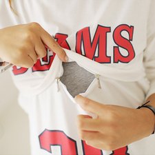 カジュアルファッションの定番、ナンバーロゴカットソー。そこに授乳機能をプラス!大きく開く授乳口で授乳がらくらく。お家でも外出先でも重宝する母乳育児の必須アイテムです。 サイズ:長袖 カラー:ネイビー、グレー、ホワイト
