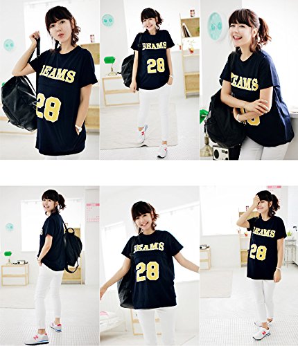 【20000104945】授乳可能 マタニティ ナンバーロゴ カジュアルコットンカットソー 授乳服 マタニティトップス (長袖, ネイビー)