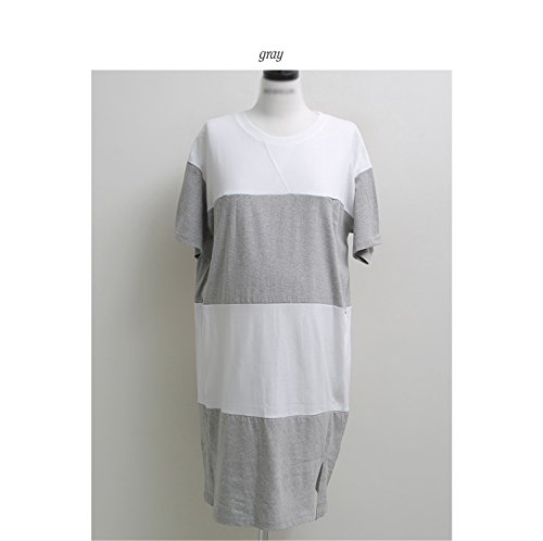 【10000108492】裾両サイドスリット バイカラー ボーダー風 授乳ワンピース マタニティウェア 授乳服 ワンピース (フリー, グレー)