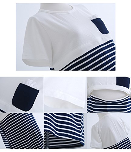 【10000104924】ポケットレース 授乳服ワンピース 半袖 ワンピース 授乳服 (フリー, ホワイト)