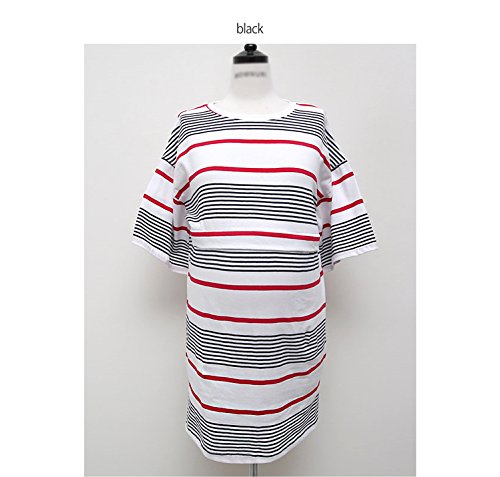 【10000108636】綿100% ボーダー柄 ゆったり 授乳服 ワンピース (フリー, ブラック)