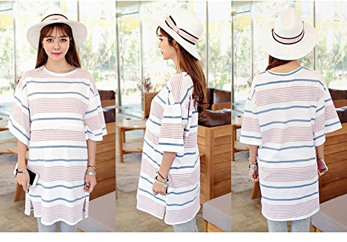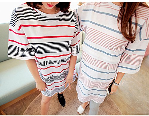 ストライプパターンとカラーの組み合わせがおしゃれなワンピースです。 両サイドにスリットが入っているのでレギンスと合わせてスッキリ着て頂けます♪ 綿100%素材で、マタニティ期の敏感な肌や赤ちゃんの肌にも優しいです^^ 伸縮性も多少あって長時間の着用でも楽チンですよ! サイズ:フリー カラー:ピンク、ブラック