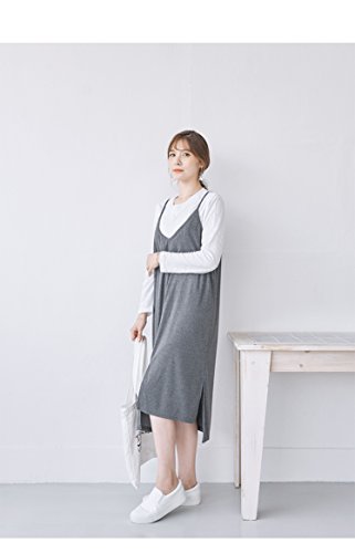 【cd108861】アシンメトリー 前後丈違い キャミソール 重ね着 マタニティ 授乳服 ワンピース (フリー, チャコール)
