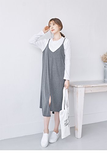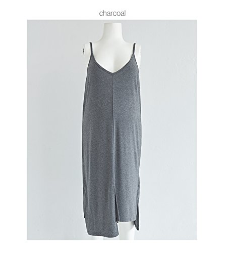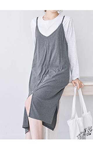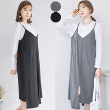 着心地楽ちんなキャミソールワンピース☆ アシンメトリーデザインがポイントです^^ 前後丈違い、スリット入りで動きやすさも◎ 伸縮性にも優れ、ストレスフリー! 妊娠後期もご着用頂けます♪ ※肩紐の調節機能はついておりません。 カラー:ブラック、チャコール サイズ:フリー