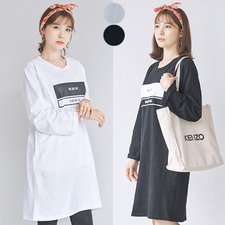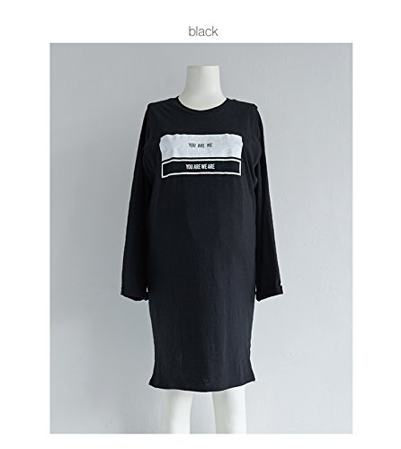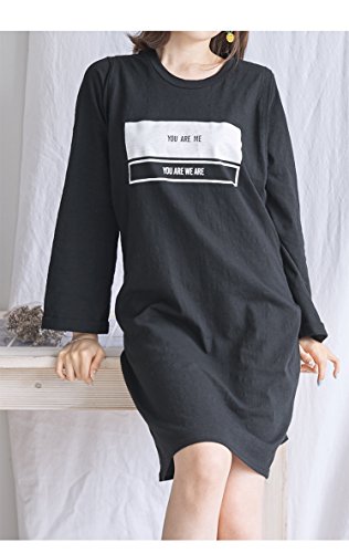 【cd108863】綿100% カジュアル 英字ロゴ Tシャツワンピ 授乳服 ワンピース (フリー, ブラック)