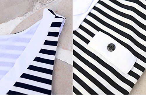 【70000100463】マタニティ 水着【ブラパッドプレゼント♪】マリン ボーダー 水着 リボン ボタン マタニティ ワンピース スイムウェア マタニティ水着 女性用水着 ワンピース型水着 マタニティーみずぎ (M, ネイビー)