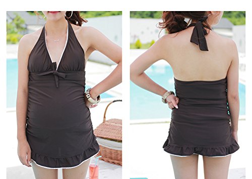 【10000104269】マタニティ 水着【ブラパッドプレゼント♪】ナチュラルレース フリル スイムウェア (L, ダークブラウン)