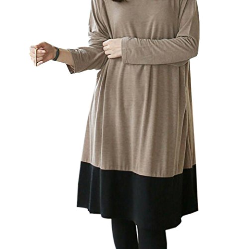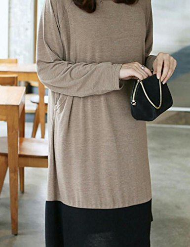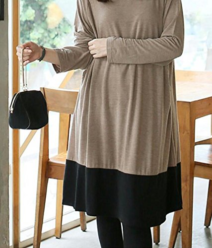 モダンな配色が目立つ ワンピースを紹介します。洗練された配色カラーがポイントになっていて特別な飾り気がなくても単品として着るのもいいし、レギンスまたはタイツと一緒に着るのもいいですね! 配色の部分が他の素材で製作されていてモダンな感じのアイテムです。普段着としてももいいし、出産後には授乳服に活用可能となっています。 カラー:ベージュ サイズ:Free