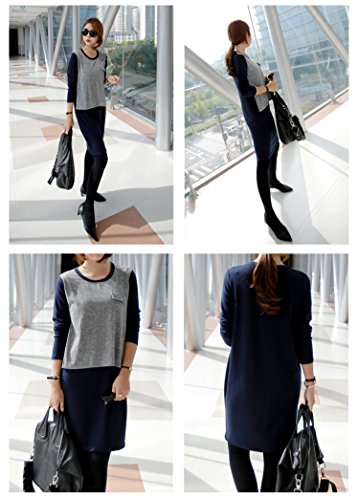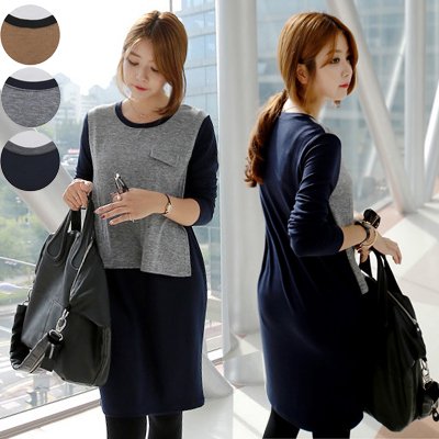 フェイクポケット付き ツートーン 授乳服ワンピース【10000107871】 (ネイビー)