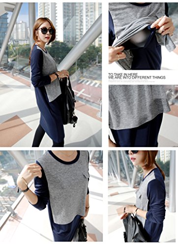 トップスのバイカラー部分をめくると左右、縦に授乳口があります!!! ジッパー、ボタンなどはついておりません^^ Iラインの細身の授乳ワンピースですが、 伸縮性があるとってもよく伸びる生地ですので、産後の身体を締付けません☆ 1枚で着ても、下着のラインが出ません★ 素材がポリエステル・レーヨンなので、シワが出来にくく取り扱いも楽チンですよ♪ カラーはチャコール×ネイビー、ブラック×ベージュ、ネイビー×グレーの3色展開です!!!