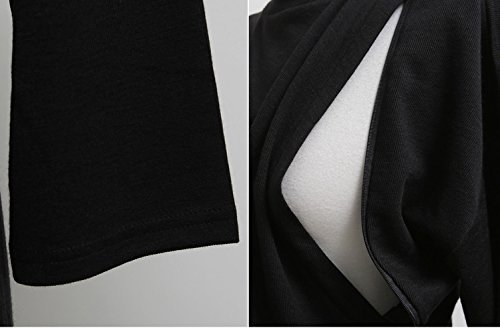 サイドスリット ドロップショルダー ハイネック 授乳服 ワンピース【10000108542】 (ブラック)