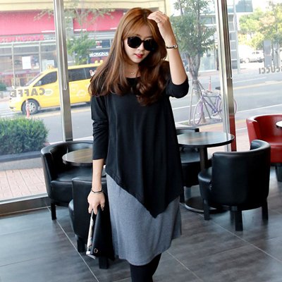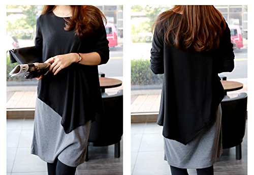 ツーピース風 アシンメトリー バイカラー 授乳服ワンピース【10000107859】 (ブラック)